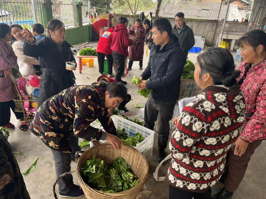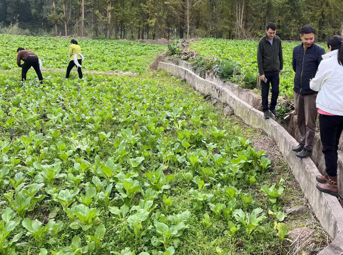 永安村驻村工作队本着“兴一个产业,活一片经济,富一方群众”的发展理念,驻村工作队多次前往彭州、名山等地调研示范产业项目,结合本村实际情况,因地制宜壮大传统产业,优化产业结构,大力发展“菜篮子”蔬菜种植基地。推行“村集体+基地+农户”的发展模式,整合土地、技术资源,实行统一育苗、统一技术服务、统一规范标准、统一安排销售的运行模式,严格种植标准,提高综合效益。吸引68户农户自愿加入“菜篮子”种植基地,再加上村集体流转的土地形成了200亩菜苔和20亩豌豆尖种植基地。在此期间驻村工作队多次邀请市农业农村局专家到永安村向农户开展培训,传授蔬菜种植技术。